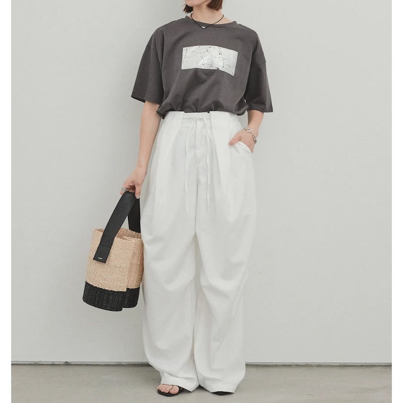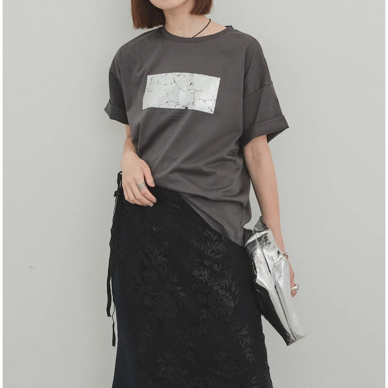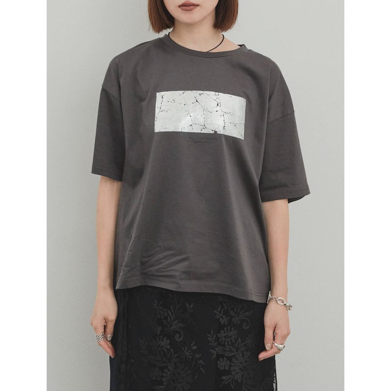 vingtrois レディース ドライタッチコットン クラッシュ箔プリントT (08 チャコール)