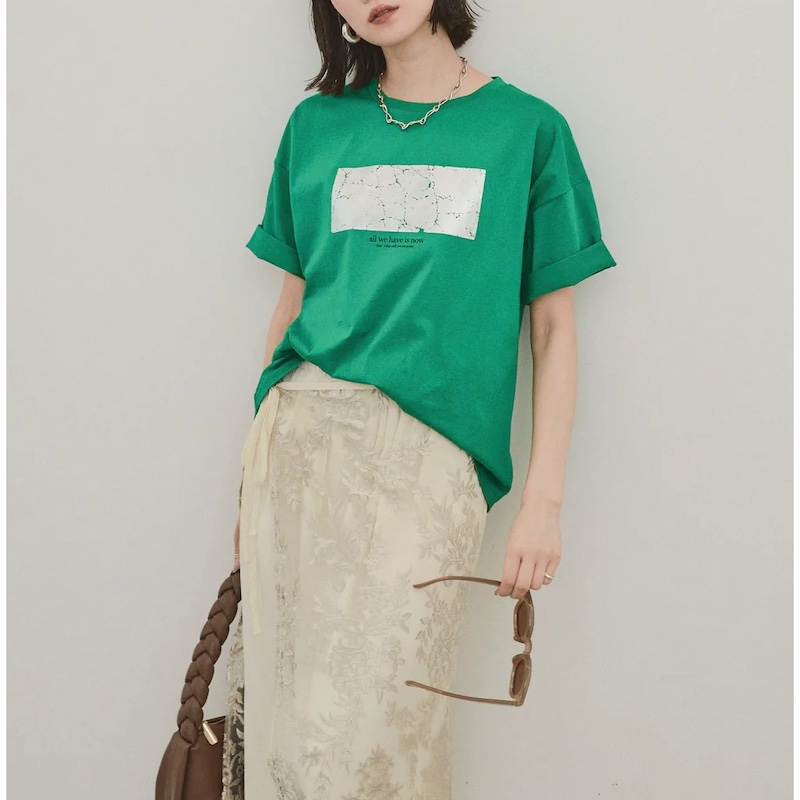 vingtrois レディース ドライタッチコットン クラッシュ箔プリントT (75 グリーン)