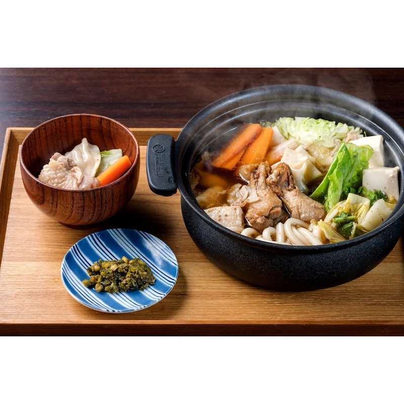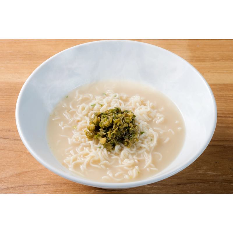 新鮮な大分市産のニラと九州産の塩蔵青唐辛子を少量の出汁と油で繋ぎました。