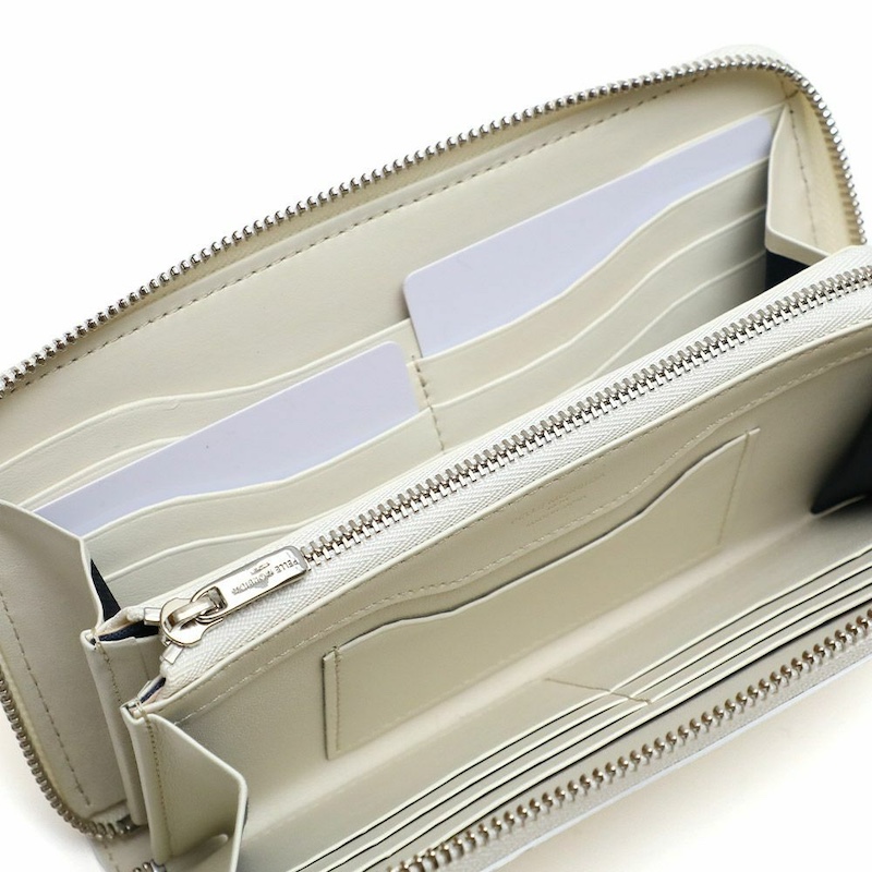 このラウンドジップ財布は人気の形状で、お札、小銭、カード、レシートなどがたっぷり入る優れもの。